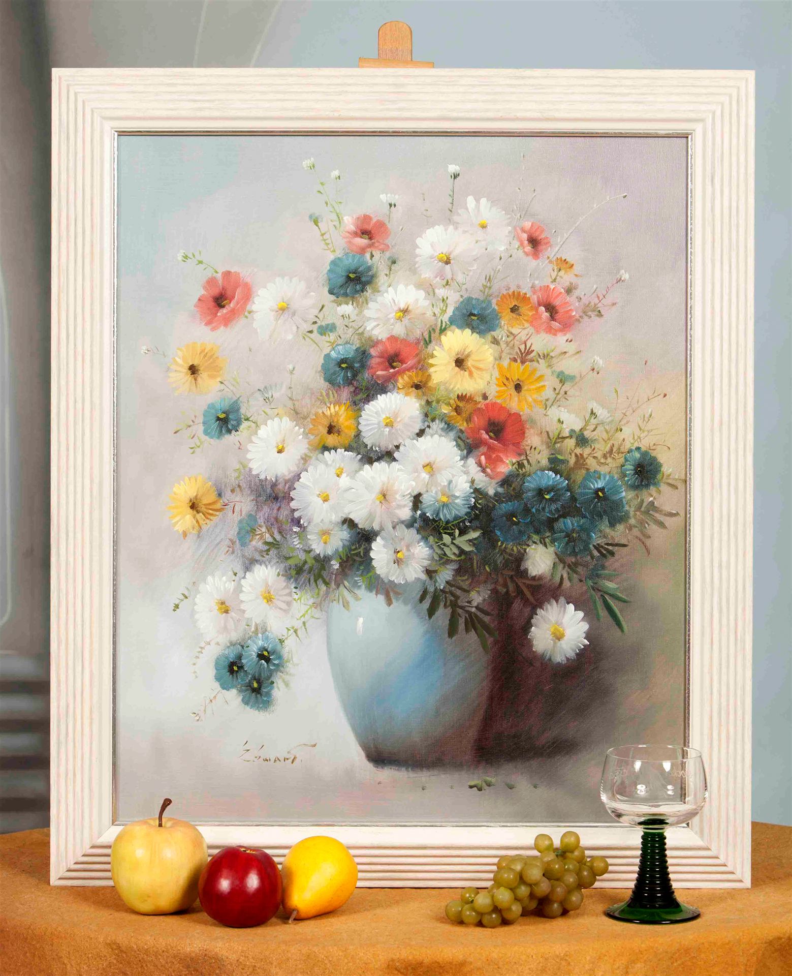 Öl auf Leinwand handgemalt (Blumen in blauer Vase) 50 x 60 cm mit Echtholzrahmen